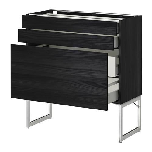 МЕТОД / МАКСИМЕРА Напольн шкаф 3фронт пнл/2низ/2ср ящ - под дерево черный, Тингсрид под дерево черный, 80x37x60 см