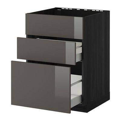 МЕТОД / МАКСИМЕРА Напольн шк п-мойку+3фрнт пнл/2ящ - 60x60 см, Рингульт глянцевый серый, под дерево черный
