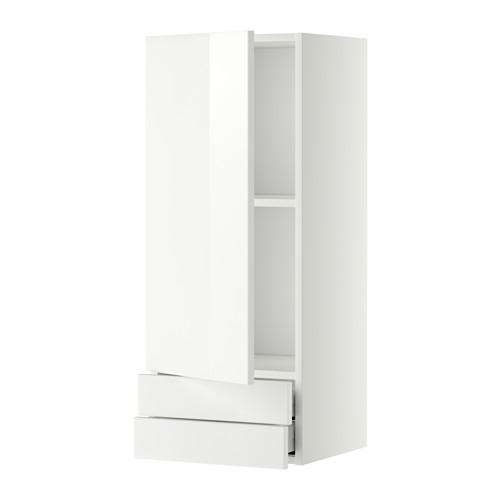 МЕТОД / МАКСИМЕРА Навесной шкаф с дверцей/2 ящика - белый, Рингульт глянцевый белый, 40x100 см