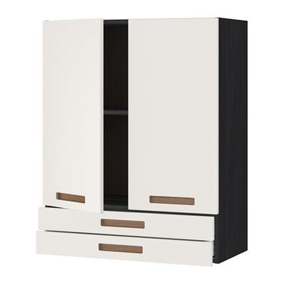 МЕТОД / МАКСИМЕРА Навесной шкаф/2дверцы/2ящика - 80x100 см, Мэрста белый, под дерево черный