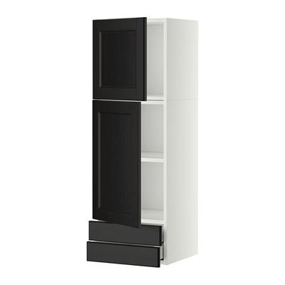 МЕТОД / МАКСИМЕРА Навесной шкаф/2дверцы/2ящика - 40x120 см, Лаксарби черно-коричневый, белый