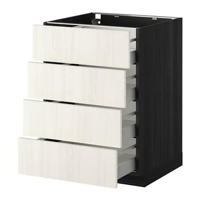 МЕТОД / МАКСИМЕРА Напольн шкаф 4 фронт панели/4 ящика - 60x60 см, Росдаль белый ясень, под дерево черный