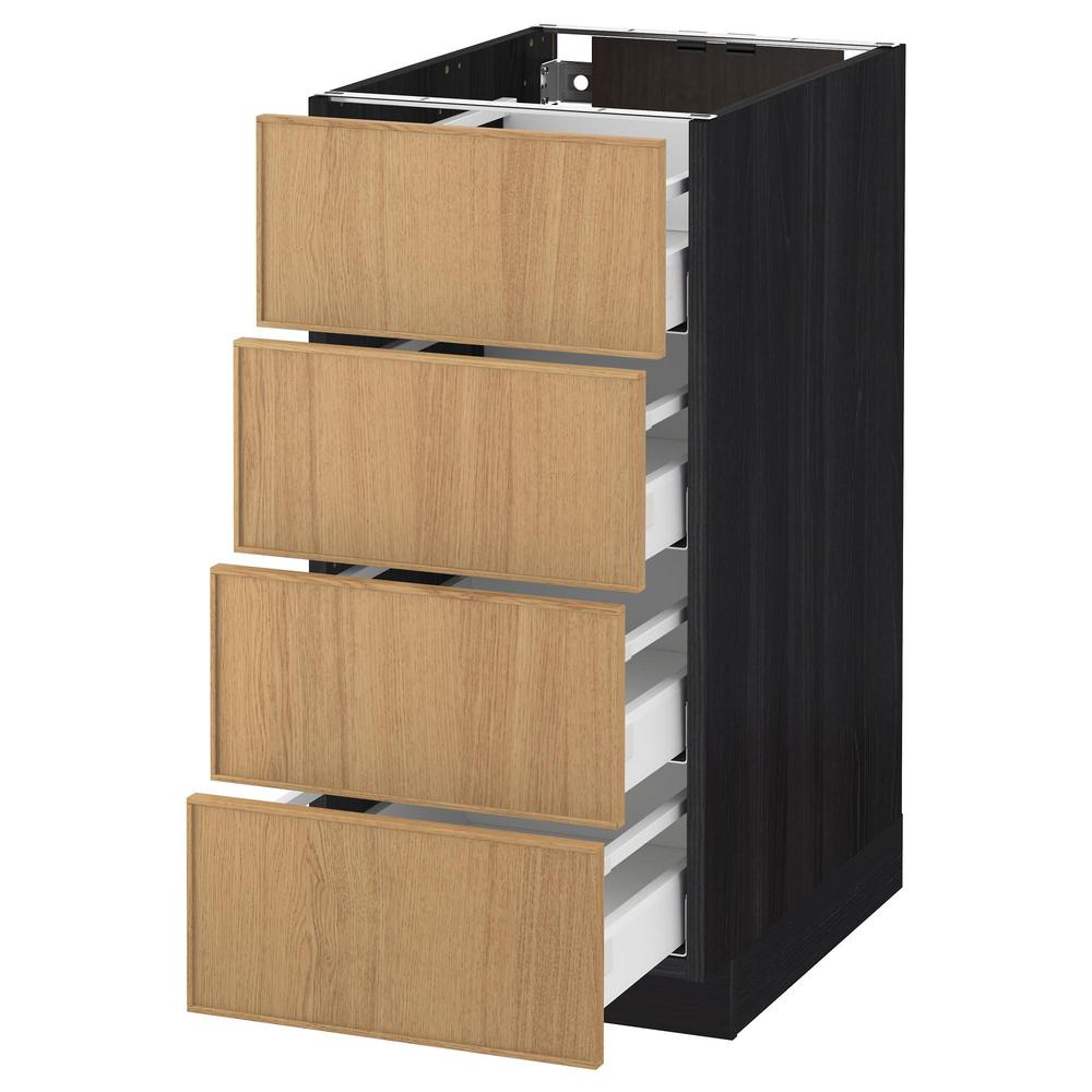 МЕТОД / МАКСИМЕРА Напольн шкаф 4 фронт панели/4 ящика - под дерево черный, Экестад дуб, 40x60 см