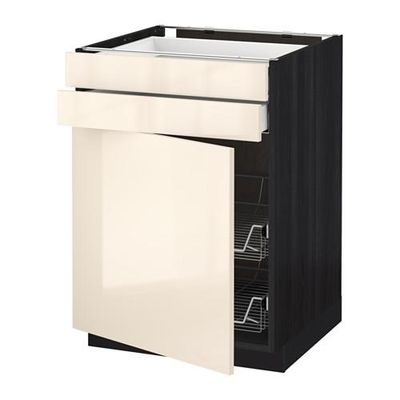 МЕТОД / МАКСИМЕРА Напольн шкаф/дверца/2ящ/првл крзн - 60x60 см, Рингульт глянцевый кремовый, под дерево черный