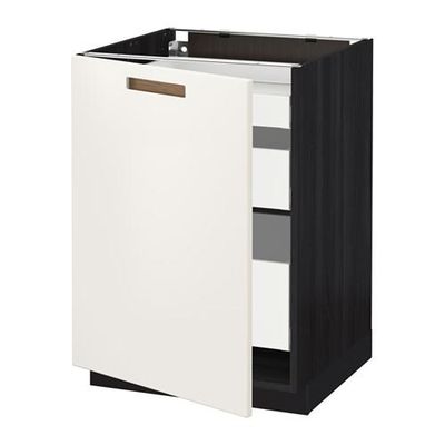 МЕТОД / МАКСИМЕРА Напольный шкаф с 1двр/3ящ - 60x60 см, Мэрста белый, под дерево черный