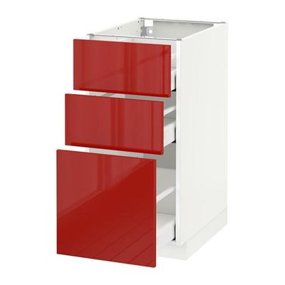 МЕТОД / МАКСИМЕРА Напольный шкаф с 3 ящиками - 40x60 см, Рингульт глянцевый красный, белый