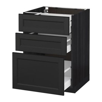 МЕТОД / МАКСИМЕРА Напольный шкаф с 3 ящиками - 60x60 см, Лаксарби черно-коричневый, под дерево черный