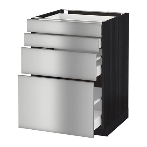 МЕТОД / МАКСИМЕРА Напольн шкаф 4 фронт панели/4 ящика - под дерево черный, Гревста нержавеющ сталь, 60x60 см