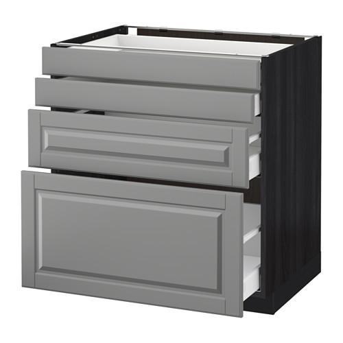 МЕТОД / МАКСИМЕРА Напольн шкаф 4 фронт панели/4 ящика - под дерево черный, Будбин серый, 80x60 см