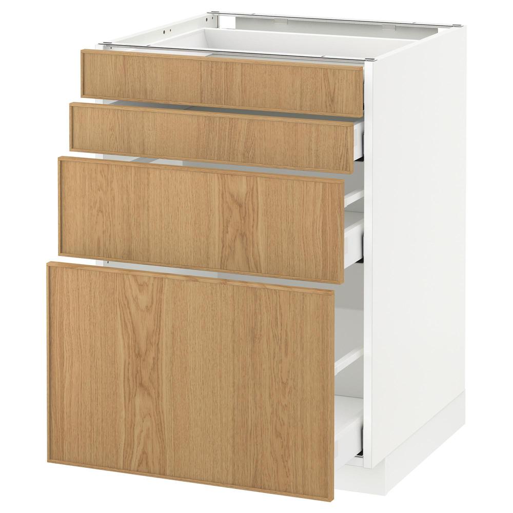 МЕТОД / МАКСИМЕРА Напольн шкаф 4 фронт панели/4 ящика - белый, Экестад дуб, 60x60 см