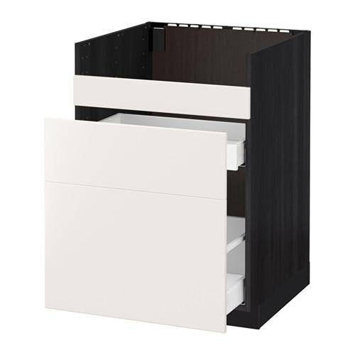 МЕТОД / МАКСИМЕРА Нап шкаф п/мойку ДУМШЁ/3фасада/2ящ - под дерево черный, Веддинге белый, 60x60 см