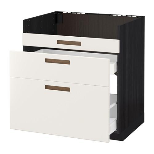 МЕТОД / МАКСИМЕРА Нап шкаф п/мойку ДУМШЁ/3фасада/2ящ - 80x60 см, Мэрста белый, под дерево черный