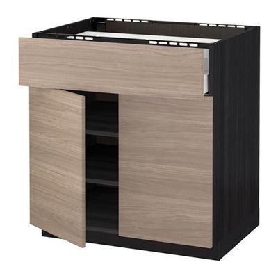 МЕТОД / МАКСИМЕРА Нплн шк д/врч пнл/ящ/плк/2дв - 80x60 см, Брокхульт под грецкий орех светло-серый, под дерево черный