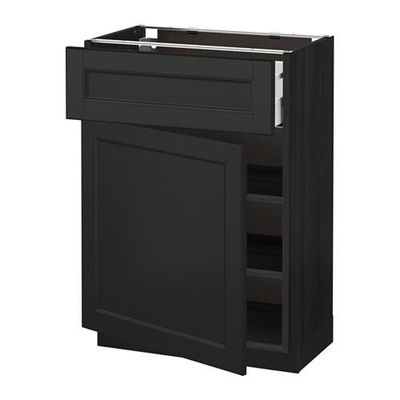 МЕТОД / МАКСИМЕРА Напольный шкаф с ящиком/дверью - 60x37 см, Лаксарби черно-коричневый, под дерево черный