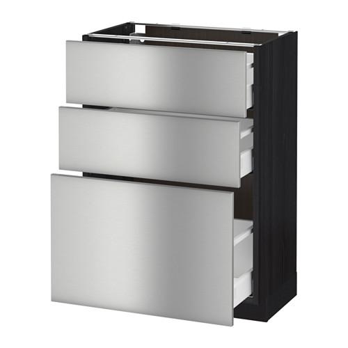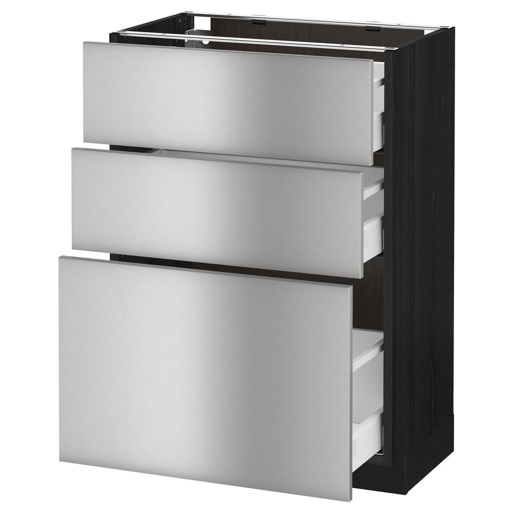 МЕТОД / МАКСИМЕРА Напольный шкаф с 3 ящиками - под дерево черный, Гревста нержавеющ сталь, 60x37 см