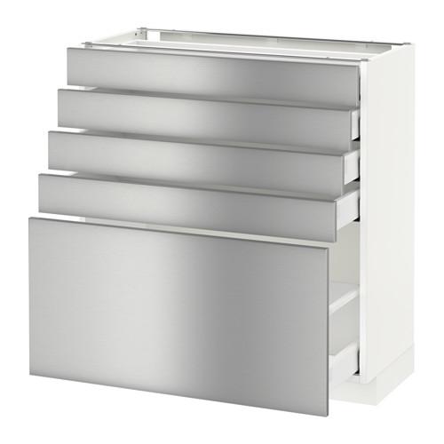 МЕТОД / МАКСИМЕРА Напольный шкаф с 5 ящиками - белый, Гревста нержавеющ сталь, 80x37 см