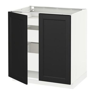 МЕТОД / МАКСИМЕРА Напольный шкаф с 2дверцами/3ящиками - Лаксарби черно-коричневый, белый
