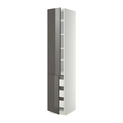 МЕТОД / МАКСИМЕРА Высокий шкаф+полки/3 ящика/2 дверцы - 40x60x220 см, Рингульт глянцевый серый, белый