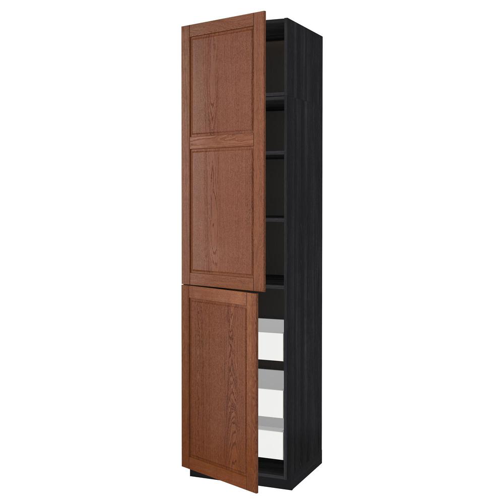 МЕТОД / МАКСИМЕРА Высокий шкаф+полки/3 ящика/2 дверцы - под дерево черный, Филипстад коричневый, 60x60x240 см