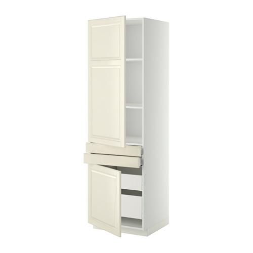 МЕТОД / МАКСИМЕРА Выс шкаф+полки/4 ящк/2двр/2фрнт - белый, Будбин белый с оттенком