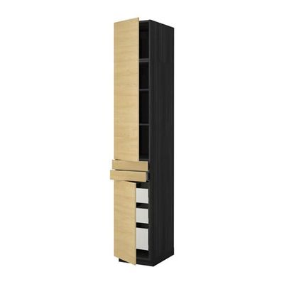 МЕТОД / МАКСИМЕРА Высок шкаф+полки/5ящк/2дверцы/2фрнт - 40x60x240 см, Тингсрид под березу, под дерево черный