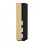 МЕТОД / МАКСИМЕРА Высокий шкаф с ящиками - 60x37x200 см, Тингсрид под березу, под дерево черный