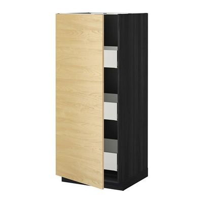 МЕТОД / МАКСИМЕРА Высокий шкаф с ящиками - 60x60x140 см, Тингсрид под березу, под дерево черный