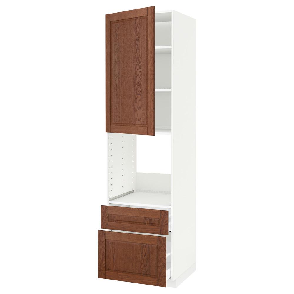 МЕТОД / МАКСИМЕРА Высок шкаф д духов+дверь/2 ящика - белый, Филипстад коричневый, 60x60x220 см