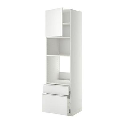 МЕТОД / МАКСИМЕРА Высок шкаф д/духовки/СВЧ/дверца/2ящ - 60x60x220 см, Нодста белый/алюминий, белый