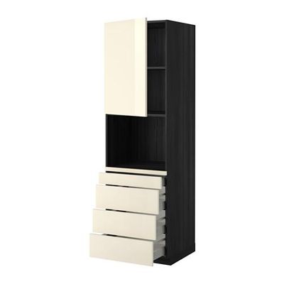 МЕТОД / МАКСИМЕРА Высокий шкаф д/комбинир СВЧ/4 ящика - 60x60x200 см, Рингульт глянцевый кремовый, под дерево черный