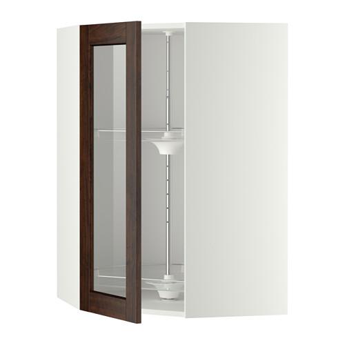 МЕТОД Углов навесн шк с врщ скц/сткл дв - белый, Эдсерум под дерево коричневый, 68x100 см