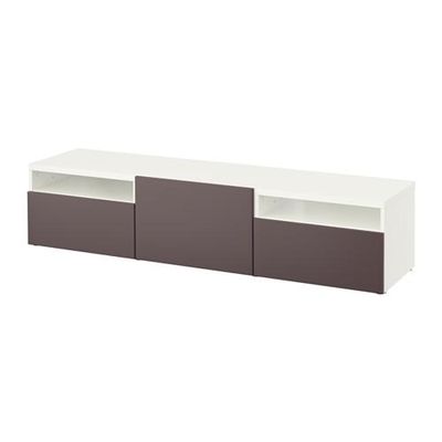 БЕСТО Тумба под ТВ - белый/Вальвикен темно-коричневый, направляющие ящика,нажимные