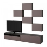 БЕСТО Шкаф для ТВ, комбинация - черно-коричневый/Вальвикен темно-коричневый, направляющие ящика, плавно закр