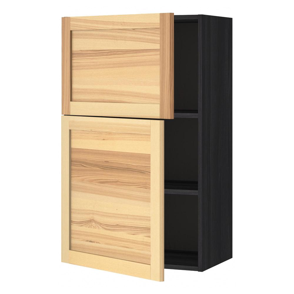 МЕТОД Навесной шкаф с полками/2дверцы - под дерево черный, Торхэмн естественный ясень