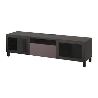 БЕСТО Тумба под ТВ - черно-коричневый/Вальвикен коричневый, прозрачное стекло, направляющие ящика, плавно закр