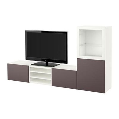 БЕСТО Шкаф для ТВ, комбин/стеклян дверцы - белый/Вальвикен темно-коричневый, прозрачное стекло, направляющие ящика, плавно закр