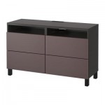 БЕСТО Тумба д/ТВ с ящиками - черно-коричневый/Вальвикен темно-коричневый, направляющие ящика, плавно закр