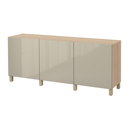 БЕСТО Комбинация для хранения с дверцами - под беленый дуб/Сельсвикен глянцевый/бежевый