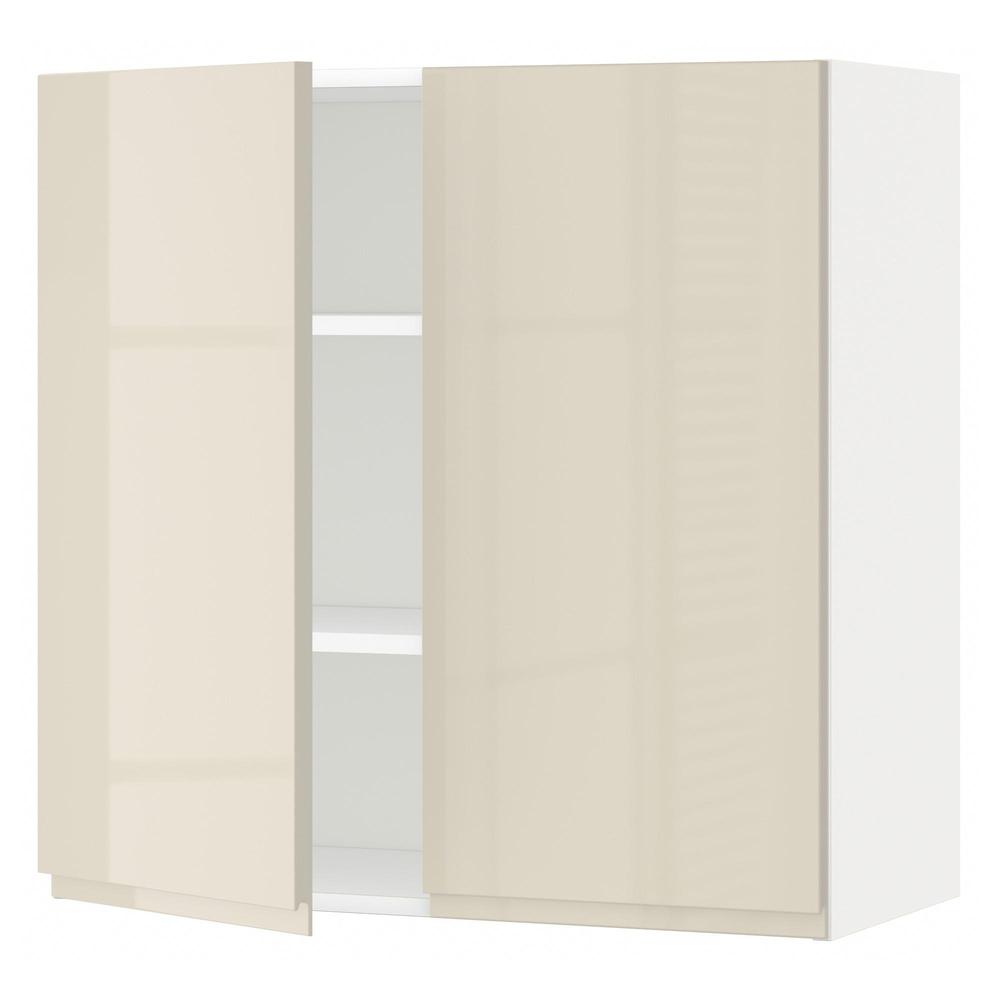 МЕТОД Навесной шкаф с полками/2дверцы - белый, Воксторп глянцевый светло-бежевый, 80x80 см