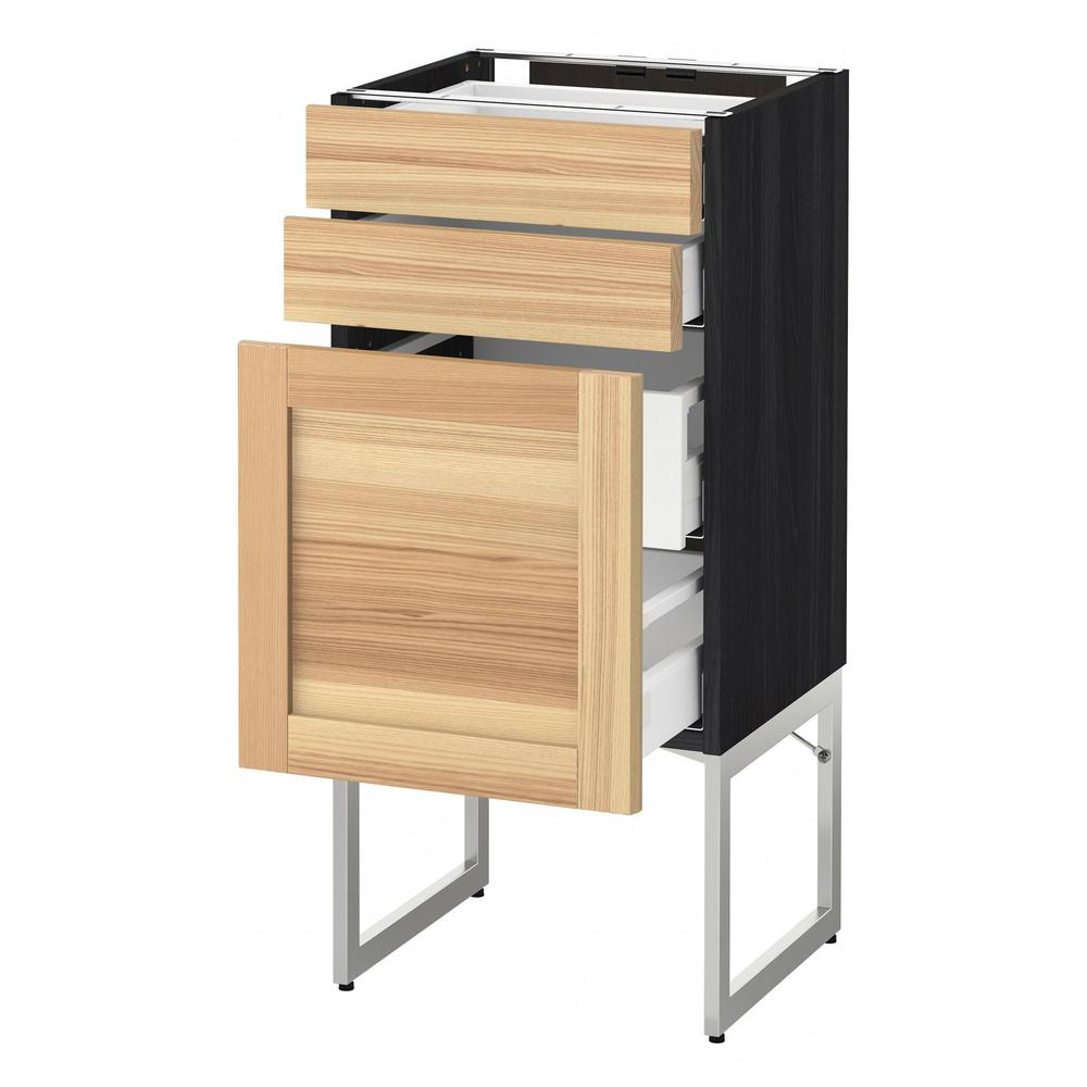 МЕТОД / МАКСИМЕРА Напольн шкаф 3фронт пнл/2низ/2ср ящ - под дерево черный, Торхэмн естественный ясень, 40x37x60 см