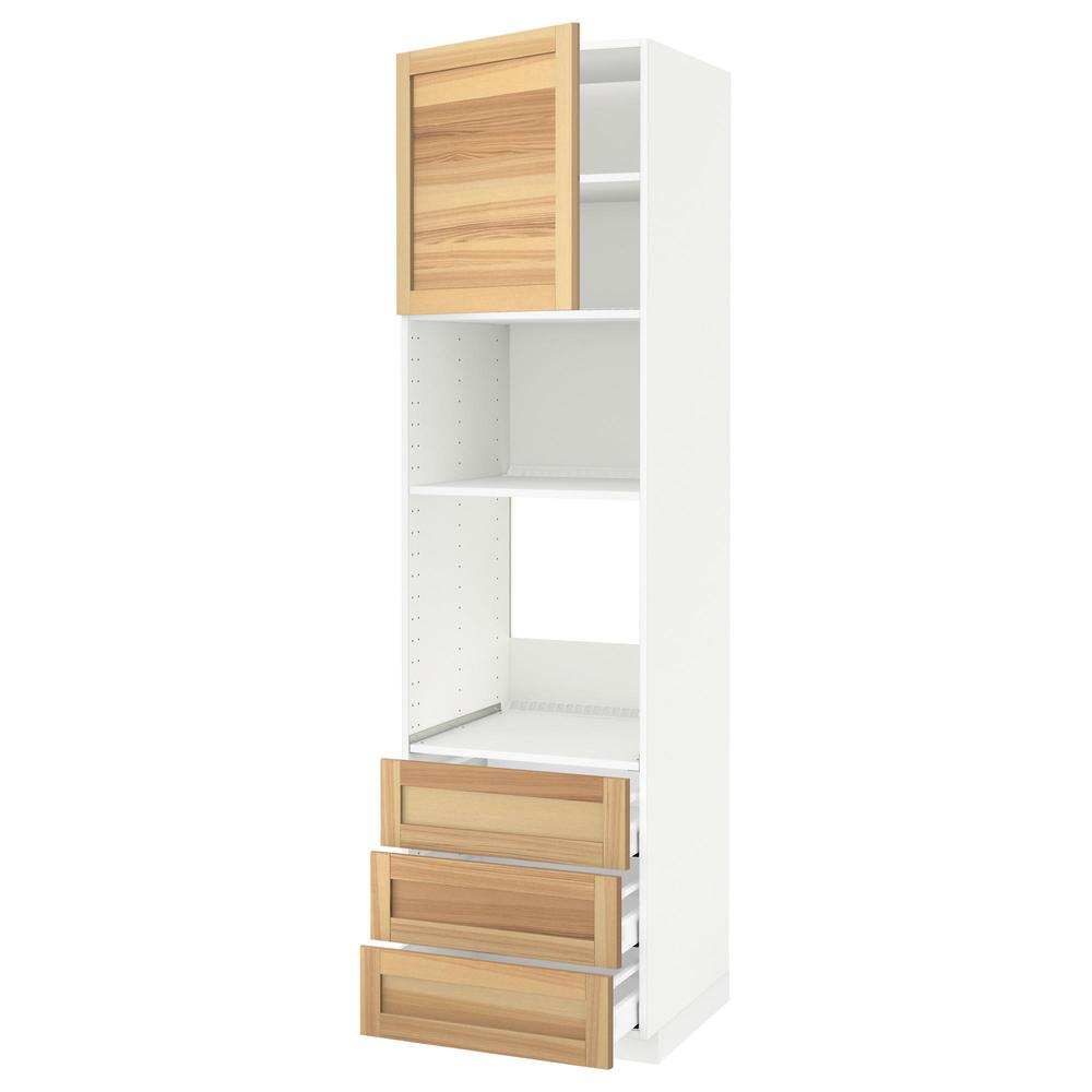 МЕТОД / МАКСИМЕРА Высок шкаф д/духовки/СВЧ/дверца/3ящ - белый, Торхэмн естественный ясень, 60x60x220 см