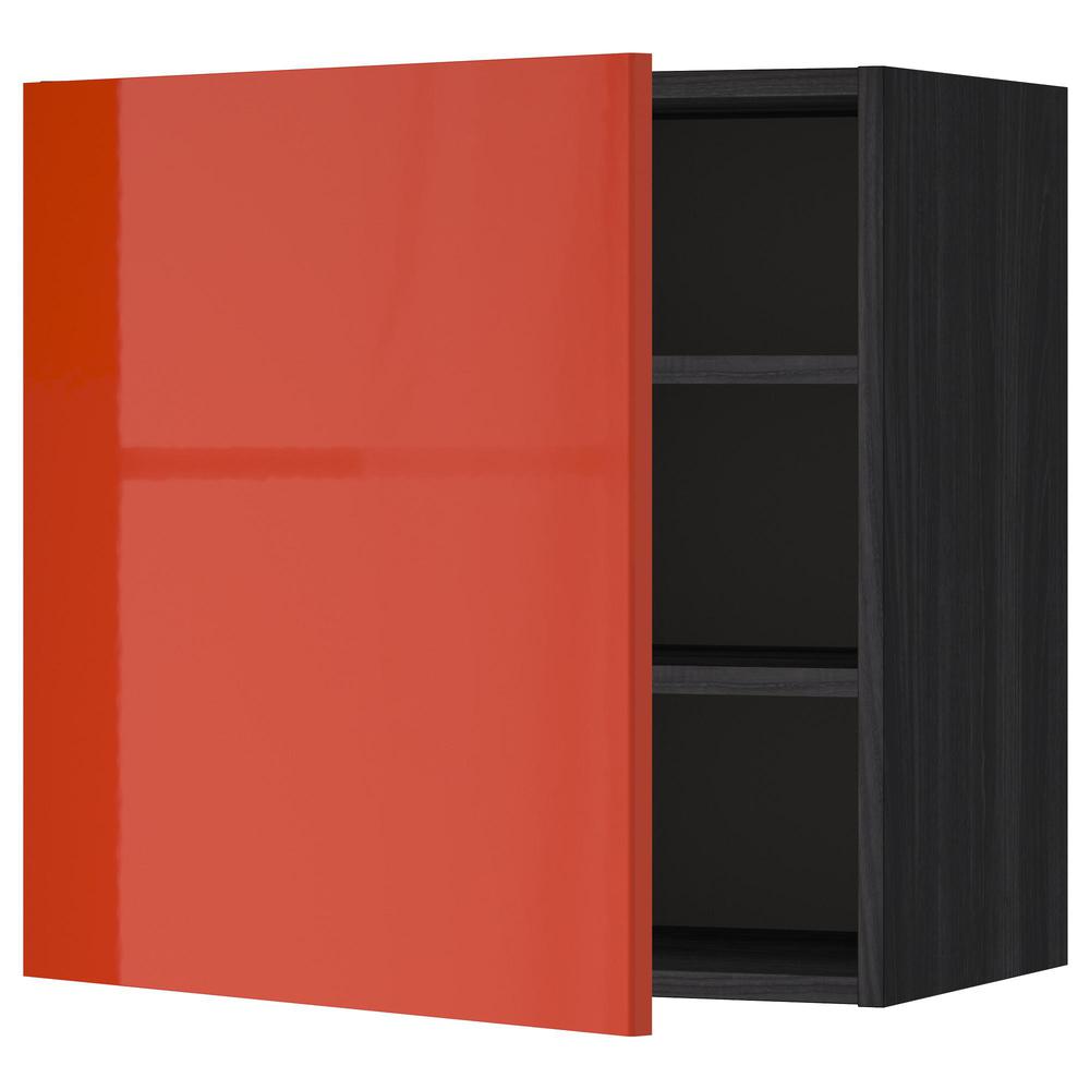 МЕТОД Шкаф навесной с полкой - под дерево черный, Ерста глянцевый оранжевый, 60x60 см