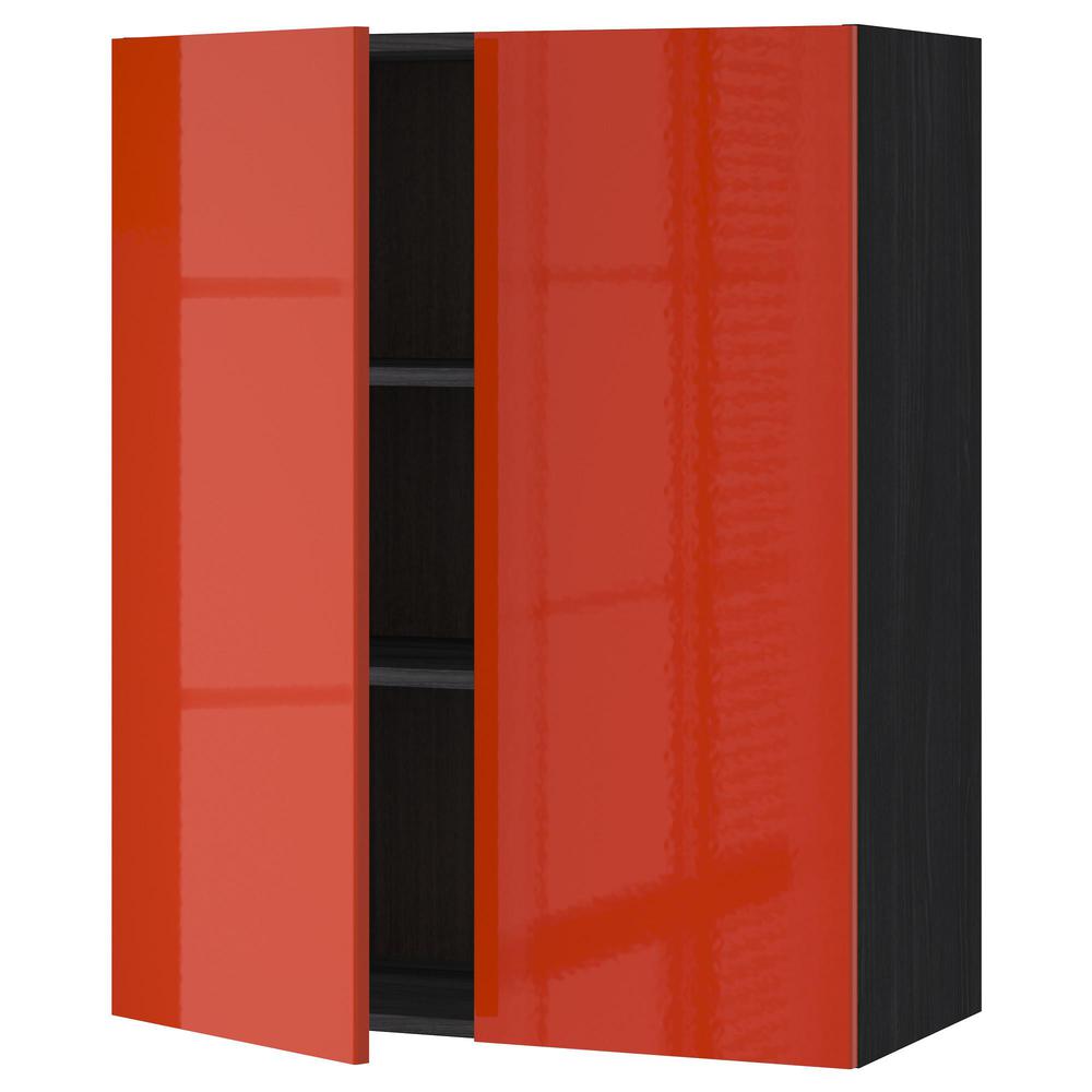 МЕТОД Навесной шкаф с полками/2дверцы - под дерево черный, Ерста глянцевый оранжевый, 80x100 см