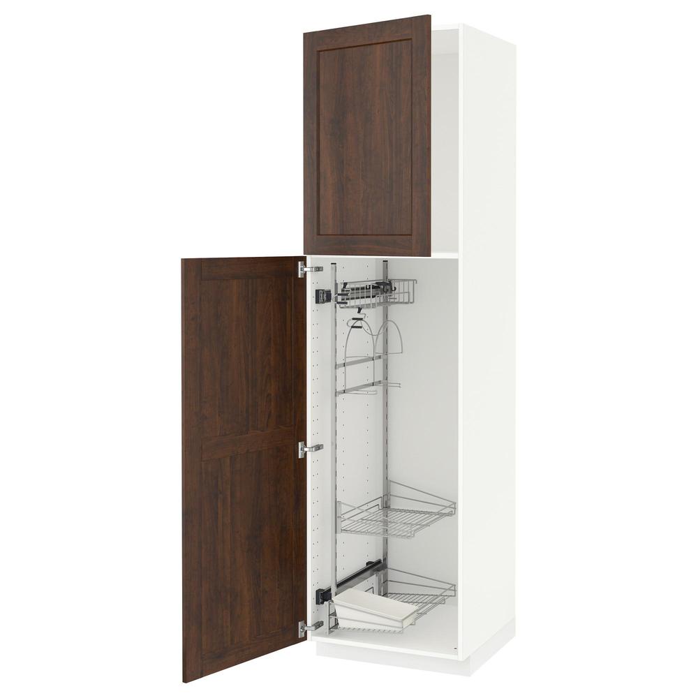 МЕТОД Выс шк с отд д/акс д/убрк - белый, Эдсерум под дерево коричневый, 60x60x220 см