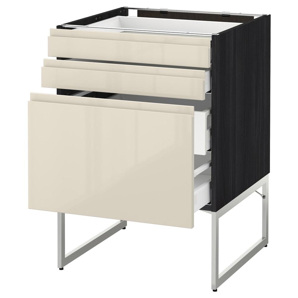 МЕТОД / МАКСИМЕРА Напольн шкаф 3фронт пнл/2низ/2ср ящ - под дерево черный, Воксторп глянцевый светло-бежевый, 60x60x60 см