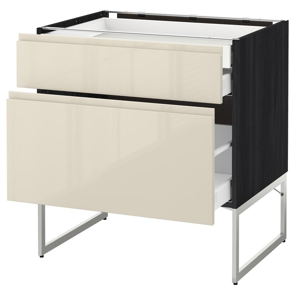 МЕТОД / МАКСИМЕРА Напольн шкаф 2фронт пнл/2низ/1вс ящ - под дерево черный, Воксторп глянцевый светло-бежевый, 80x60x60 см