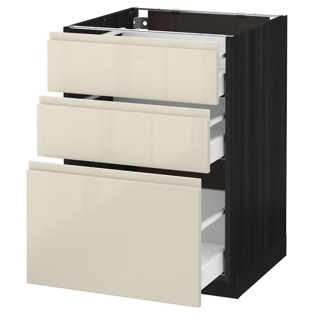 МЕТОД / МАКСИМЕРА Напольный шкаф с 3 ящиками - под дерево черный, Воксторп глянцевый светло-бежевый, 60x60 см