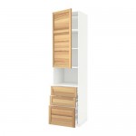 МЕТОД / МАКСИМЕРА Высокий шкаф д/СВЧ+дверца/3 ящика - белый, Торхэмн естественный ясень, 60x60x220 см