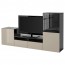БЕСТО Шкаф для ТВ, комбин/стеклян дверцы - черно-коричневый/Сельсвикен глянцевый/бежевый прозрачное стекло, направляющие ящика, плавно закр