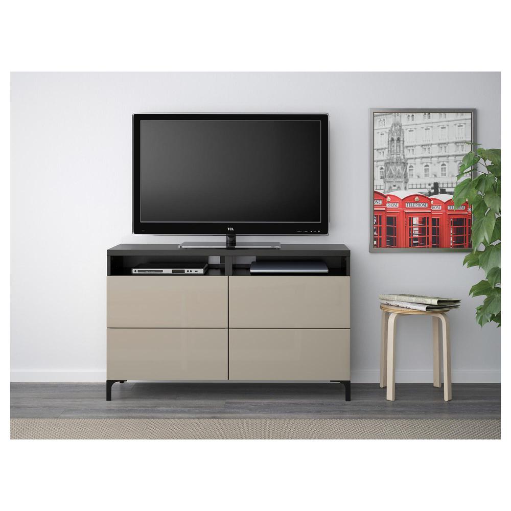 БЕСТО Тумба д/ТВ с ящиками - черно-коричневый/Сельсвикен глянцевый/бежевый, направляющие ящика,нажимные